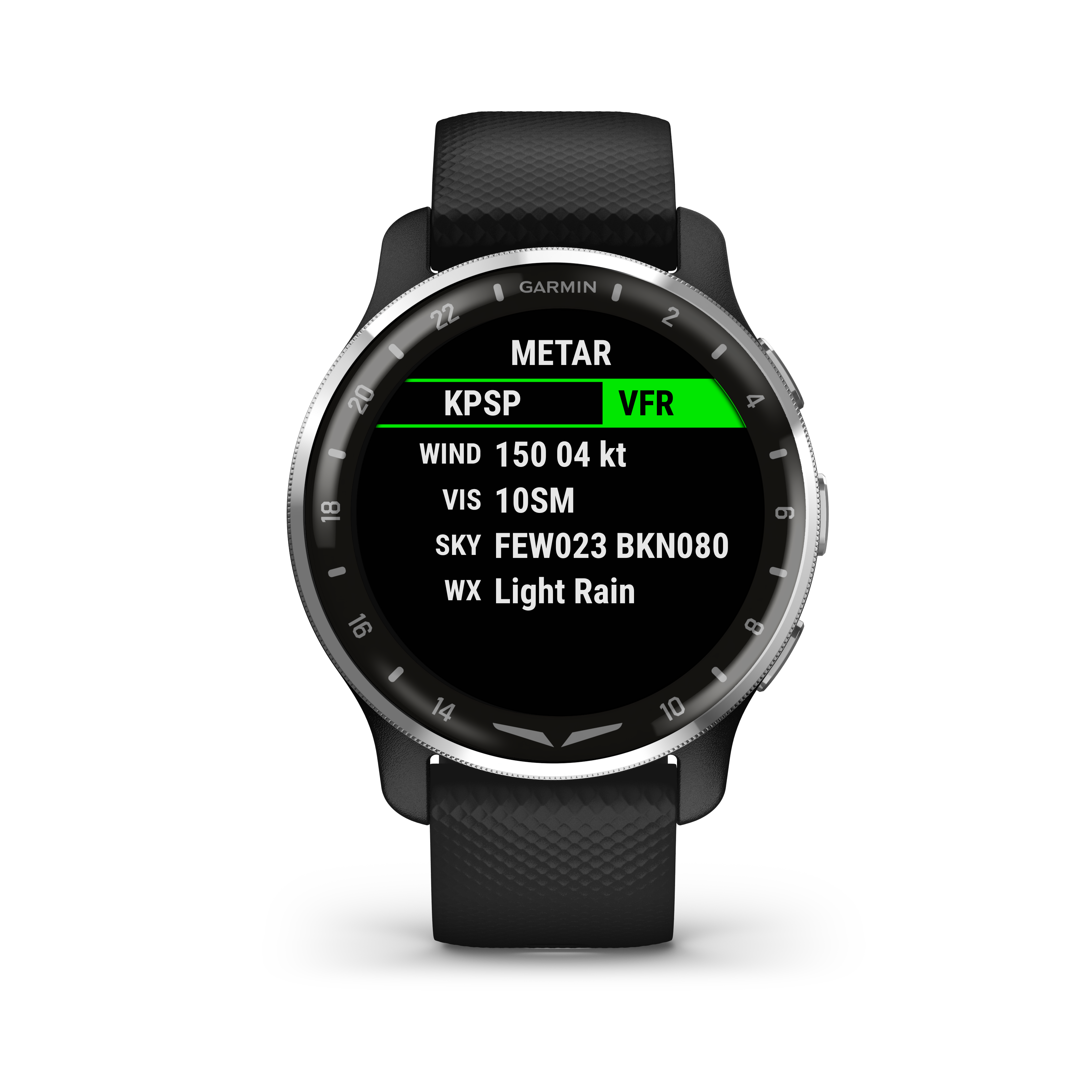 The D2 Air X10 includes preflight, in-flight and postflight features and tools to assist pilots in navigation and enhance situational awareness. Direct-to navigation lets pilots navigate straight to an airport or waypoint in the preloaded worldwide database directly from the watch or choose the Nearest function to activate a direct course to a nearby airport. The instrument-like horizontal situation